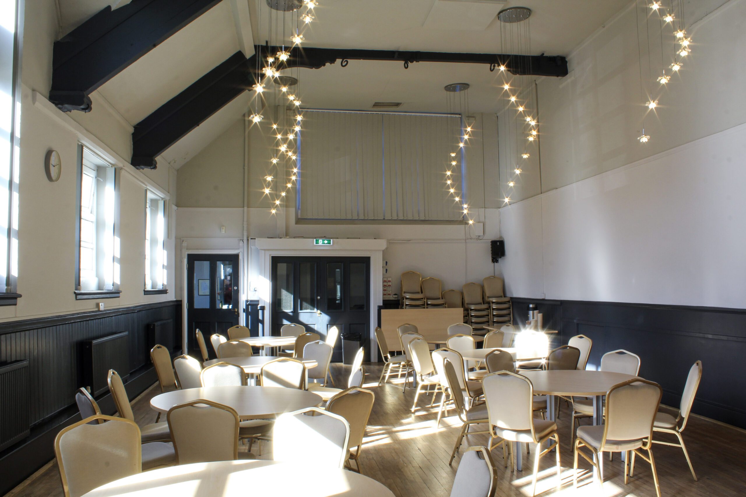 Burton Hall is a versatile and welcoming space, seating up to 70 guests. It comes equipped with a built-in sound system, projector, disco lights and a dancefloor, making it ideal for both professional and social events.